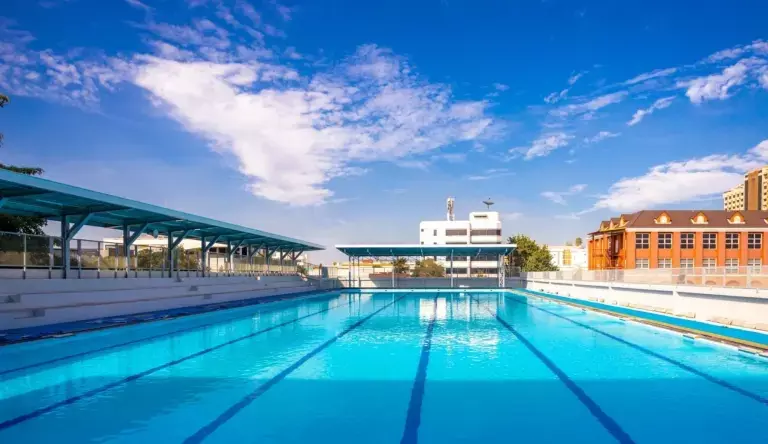 Swimming pool, football pitch, basketball court