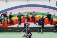 Gymnasium, Outdoor playgrounds, Climbing wall.